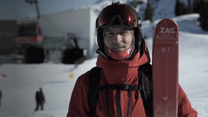 P.Y.L. — Je suis sur les Slap 104 en ce moment. Comme je le disais tout à l'heure, à l'époque on avait ces skis ultra-rigides avec lesquels tu ne pouvais rien faire d'autre que tirer droit. Aujourd'hui, j'ai envie de jouer. Les 104 sont parfaits pour ça parce qu'ils sont super maniables. Ils te permettent de slider, de pivoter super vite et de slasher le moindre relief que la montagne met sur ton chemin. Vu que je ne monte jamais avec un plan précis, j'ai besoin d'un outil capable de s'adapter instantanément à ce que le terrain me dicte. C'est exactement celui-là